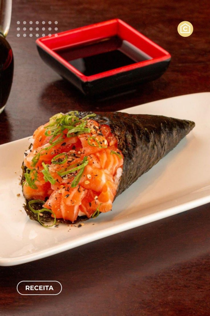 8 Uramaki fila / 8 Hossomaki salmão / 4 Niguiri skin / 4 Niguiri salmão selado / 4 Gunkan fila / 6 Sashimi salmão / 10 Hot roll cortesia