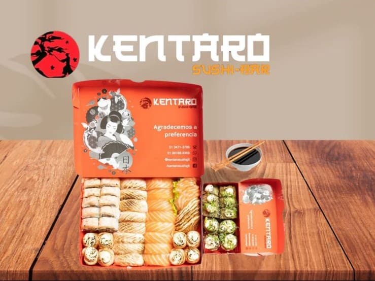 10 Laminas de sashimi / 5 Uramaki fila / 5 Uramaki shake skin / 5 Niguiri salmão selado / 5 Niguiri salmão / 4 Niguiri skin / 4 Gunkan fila / 10 hot roll cortesia